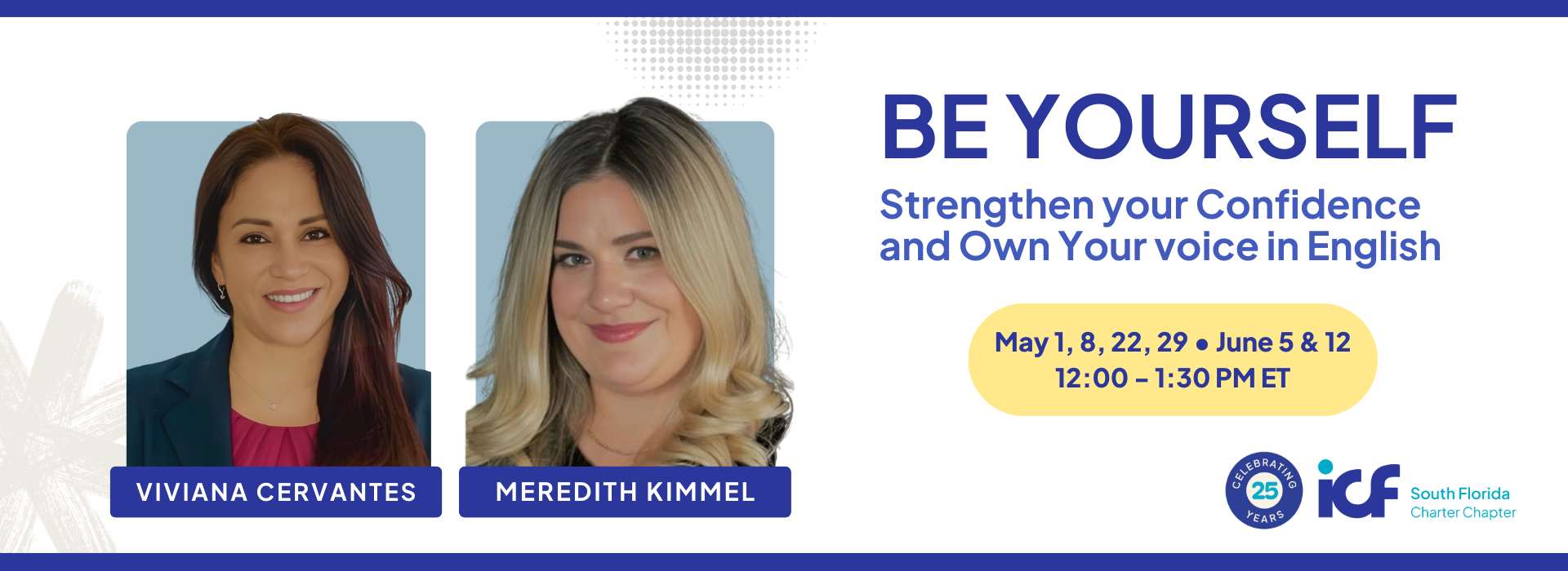 Through six interactive virtual sessions 90 min each one, participants will explore how language, culture, and identity influence confidence in coaching and professional conversations. The program integrates key ICF Core Competencies—such as Embodies a Coaching Mindset, Maintains Presence, Listens Actively, and Cultivates Trust and Safety—with emotional intelligence development, including self-awareness, resilience, and self-confidence.